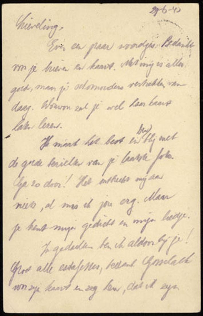 Briefkaarten (2) van Robert Heilbut (met als afzender barakkenleidster Bep Roeg) uit Westerbork aan zijn vrouw Annette Dientje Heilbut-Frankfort in Amsterdam, 1943