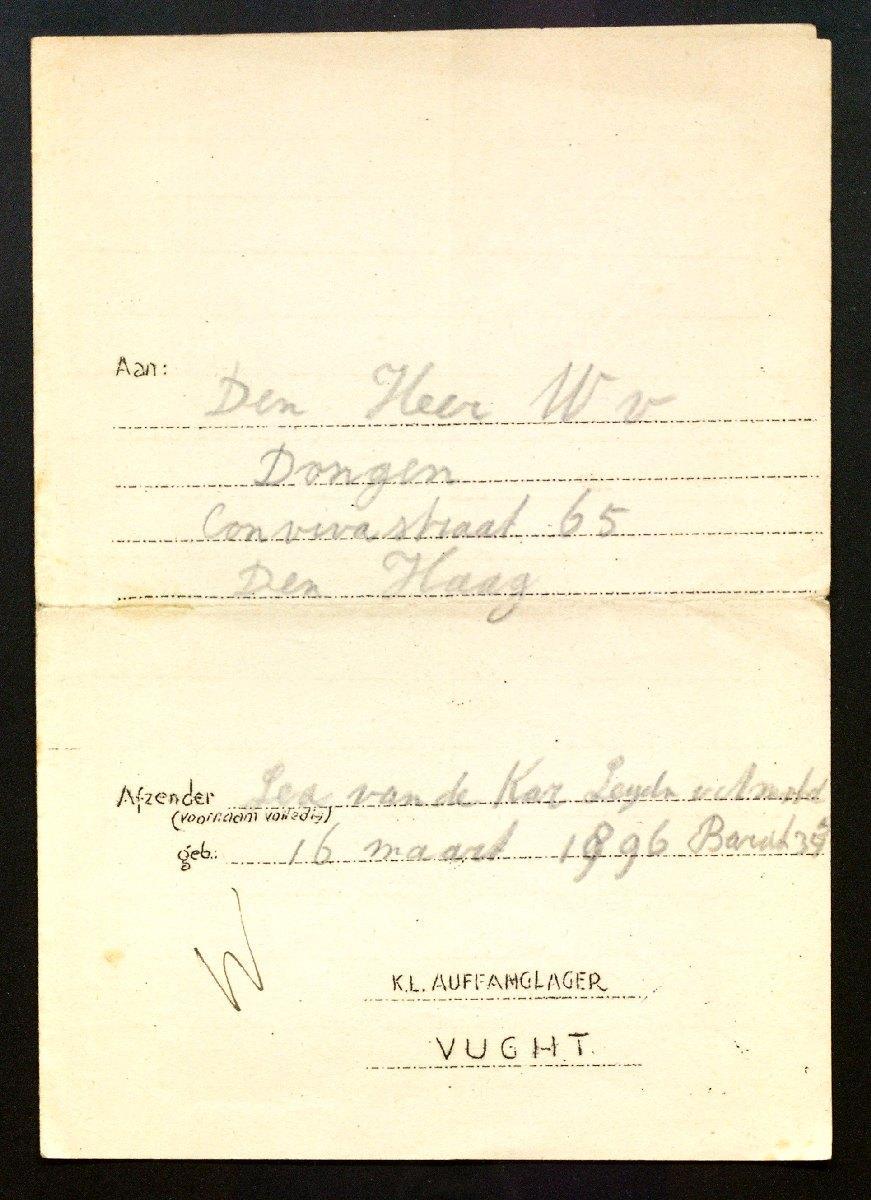 Brieven (3) van Lea van de Kar-Leijden van Amstel uit kamp Vught aan de heer W. van Dongen in Den Haag, 1943