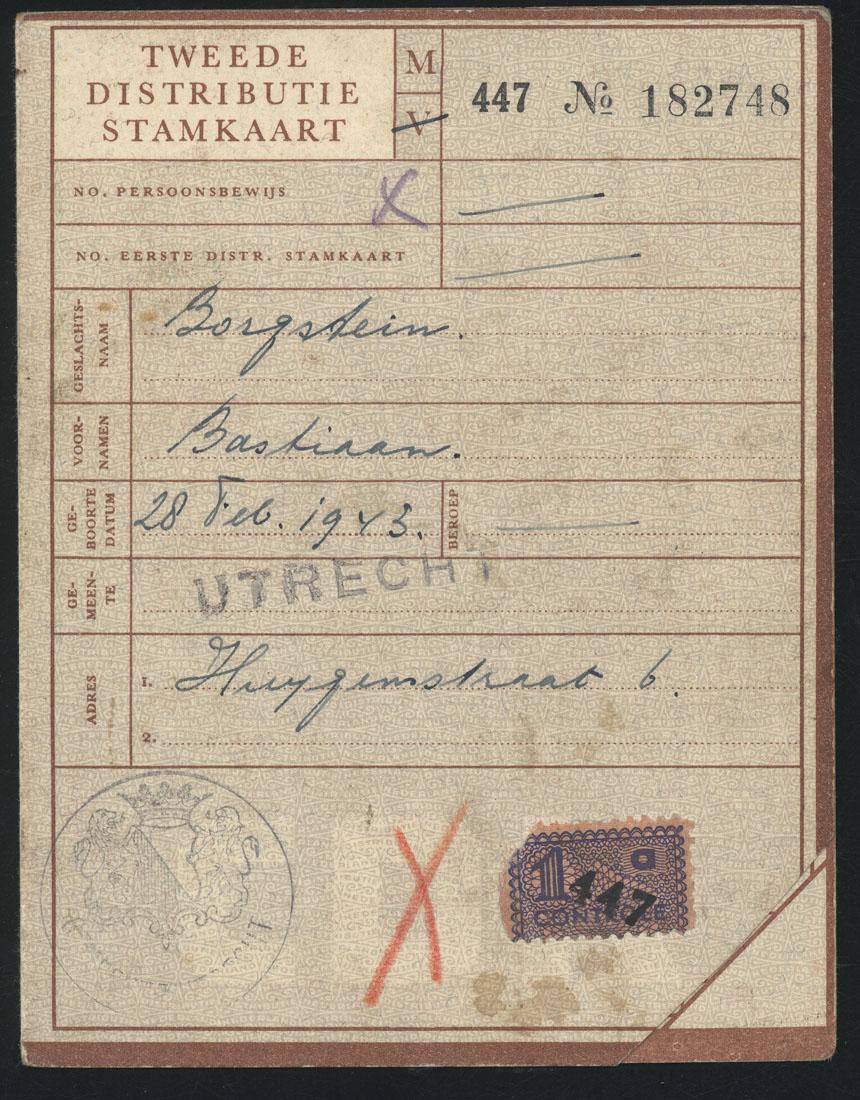 Vervalste tweede distributiestamkaart van Bas van Gelder op de naam Bastiaan Borgstein, ca. 1943