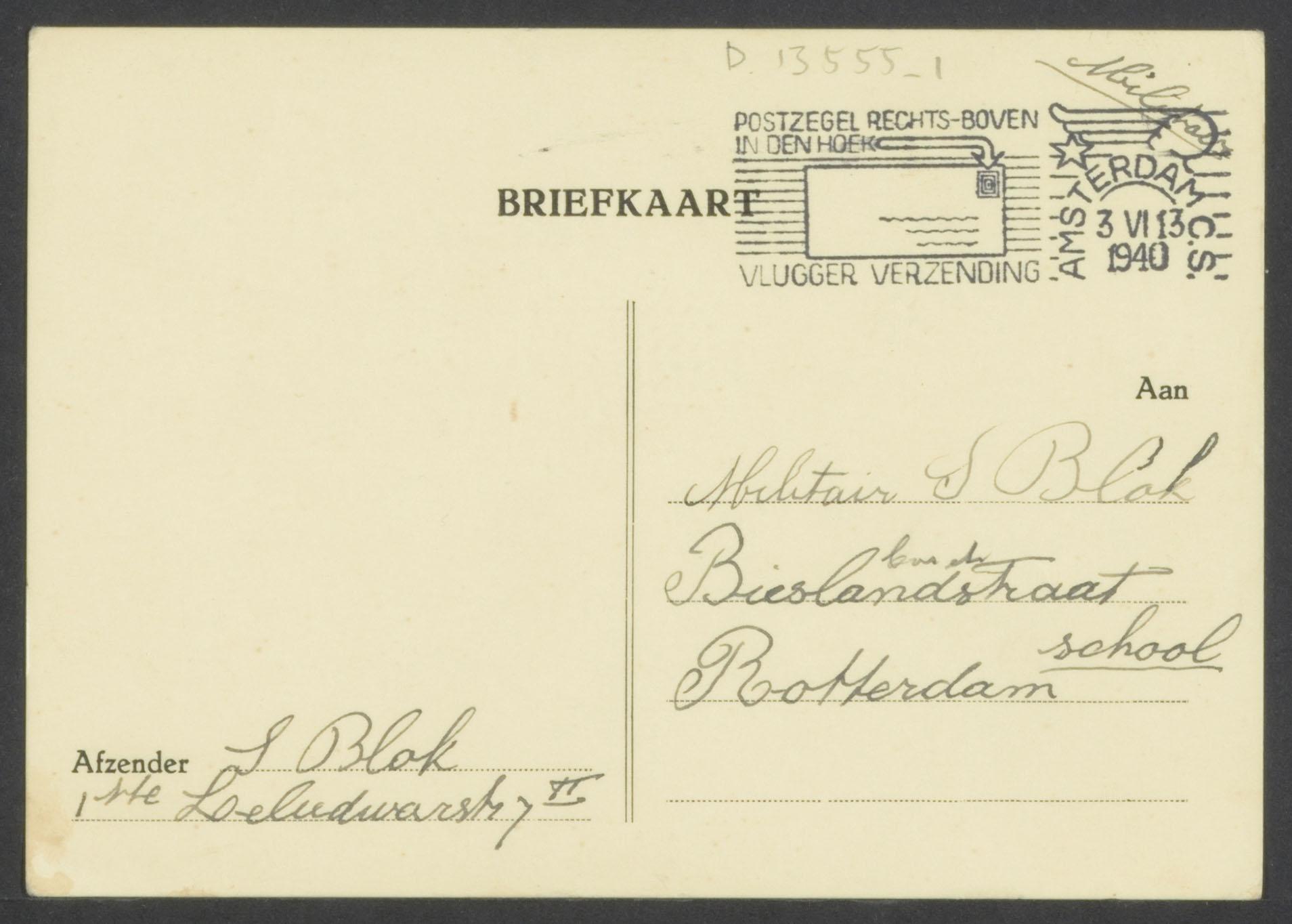 Brieven (9) van Salomon Blok en zijn vrouw aan hun zoon Simon Blok, 1940-1942