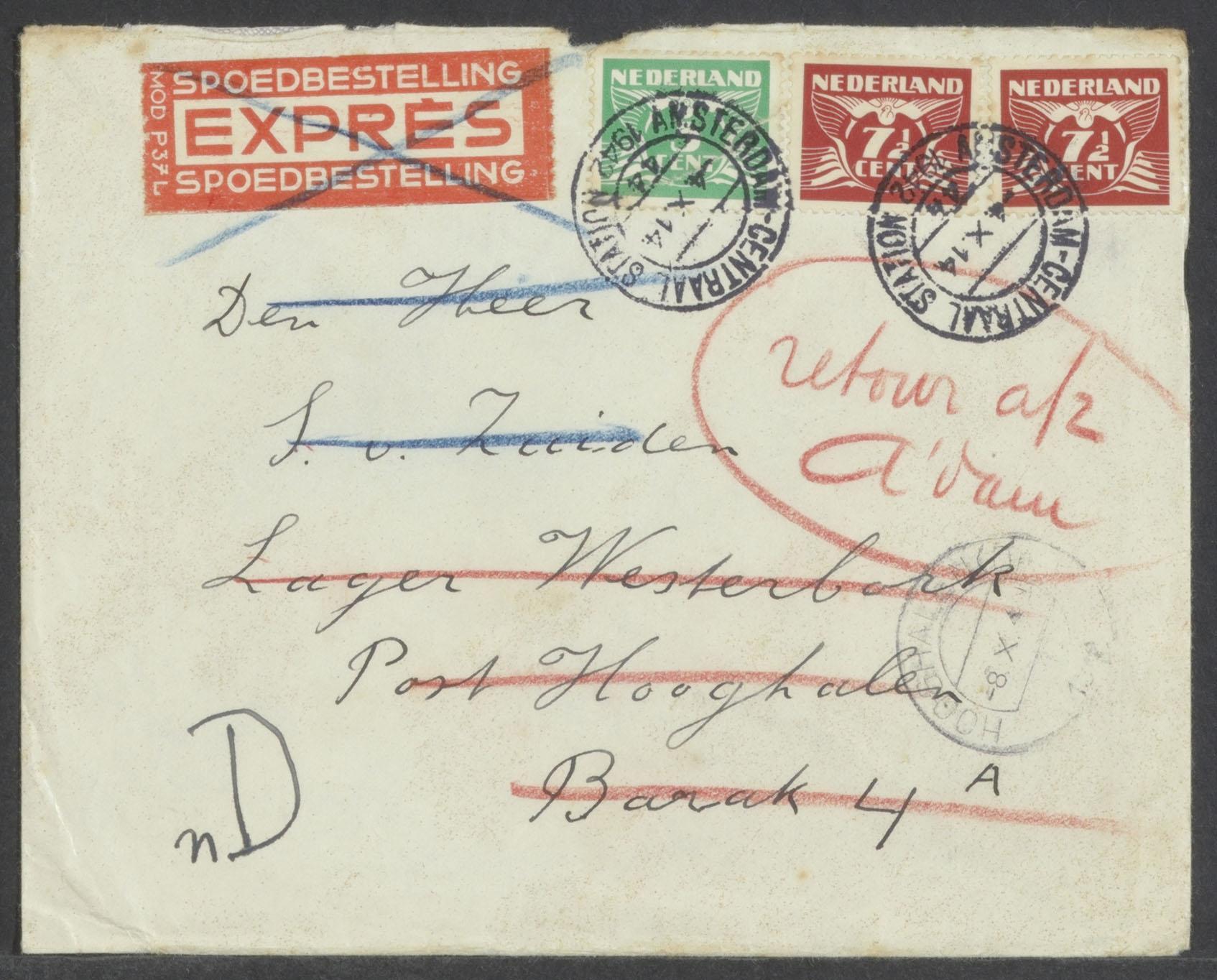 Brieven en briefkaarten aan de familie van Zuiden-Rozevelt per adres van de familie Tuinder aan de Kromme Waal in Amsterdam, 1943