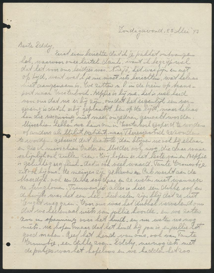 Brieven en briefkaarten van Flora Blok vanuit Westerbork en Majdanek bij Lublin aan H.J. Mommers (= Harry Cohen?) in de MiIlletstraat 47 in Amsterdam, 1943