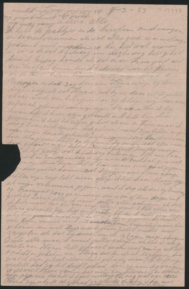 Brief van onbekende afzender vanuit Westerbork vermoedelijk aan de familie Cohen in de MiIlletstraat 47 in Amsterdam, 1943