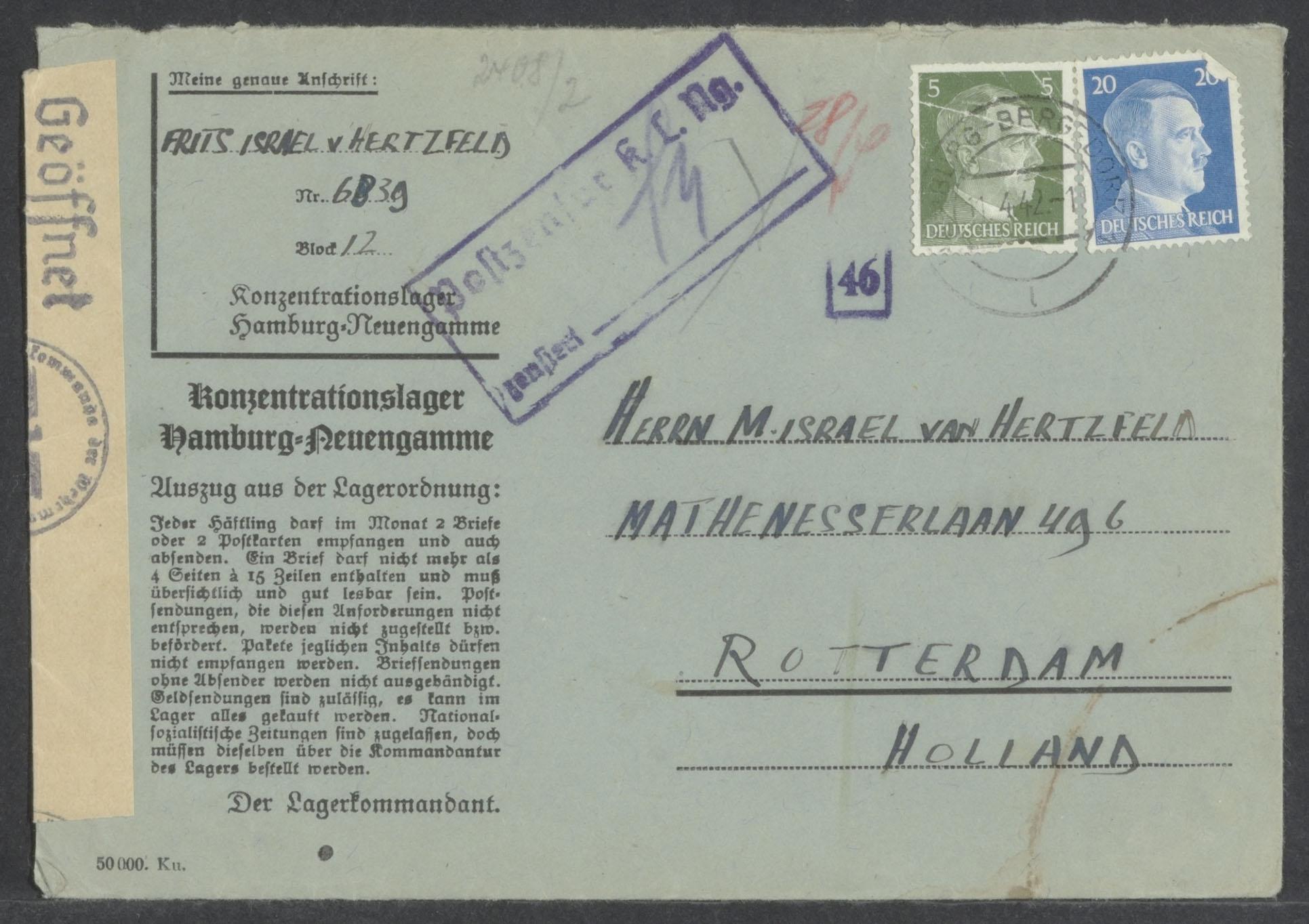 Brieven (5) van Frits Hillel van Hertzfeld vanuit concentratiekamp Hamburg-Neuengamme aan zijn ouders in Rotterdam, 1942