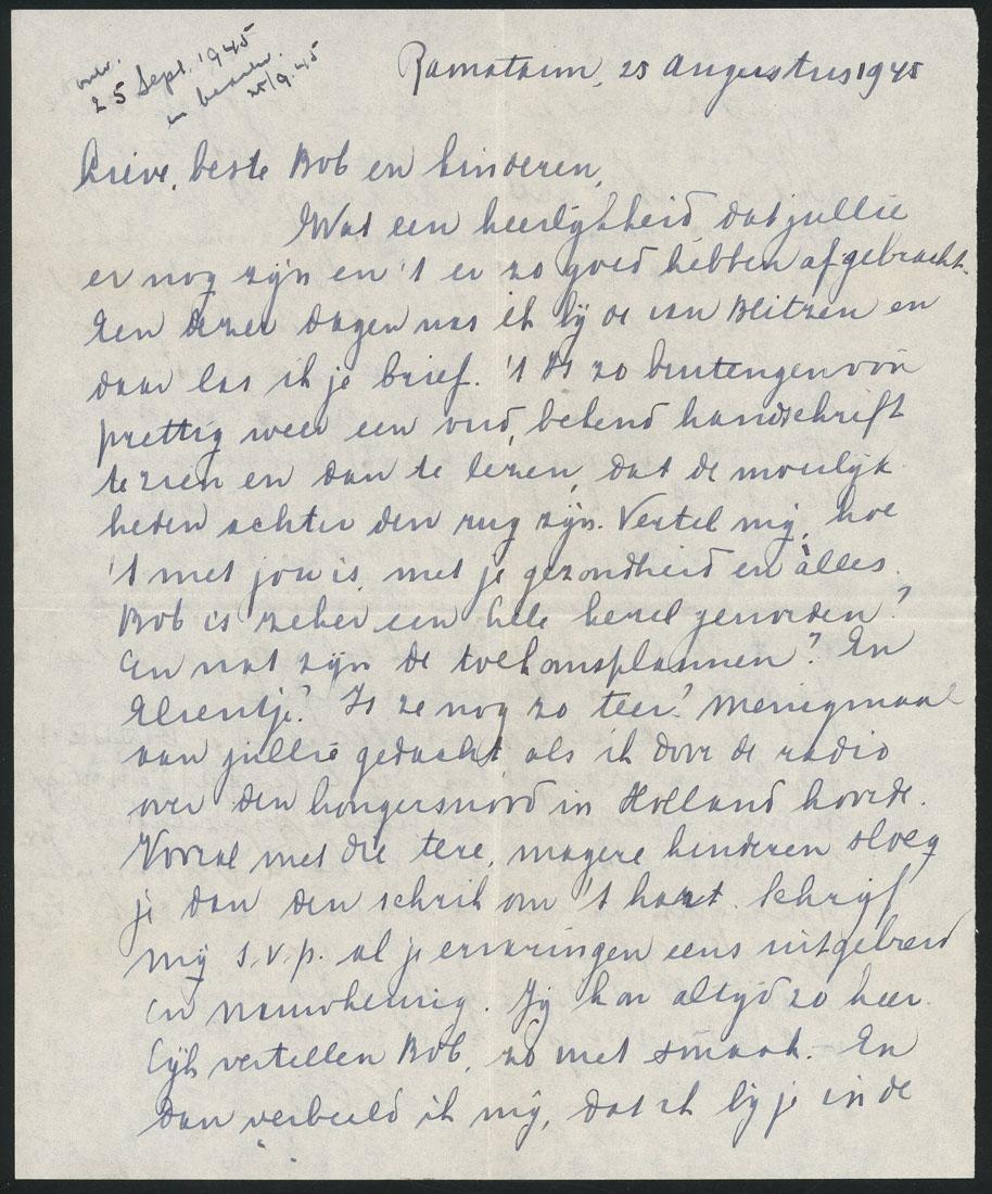 Brief van Els Brouwer vanuit Ramataim in Palestina aan de familie Smalhout in Amsterdam, 1945