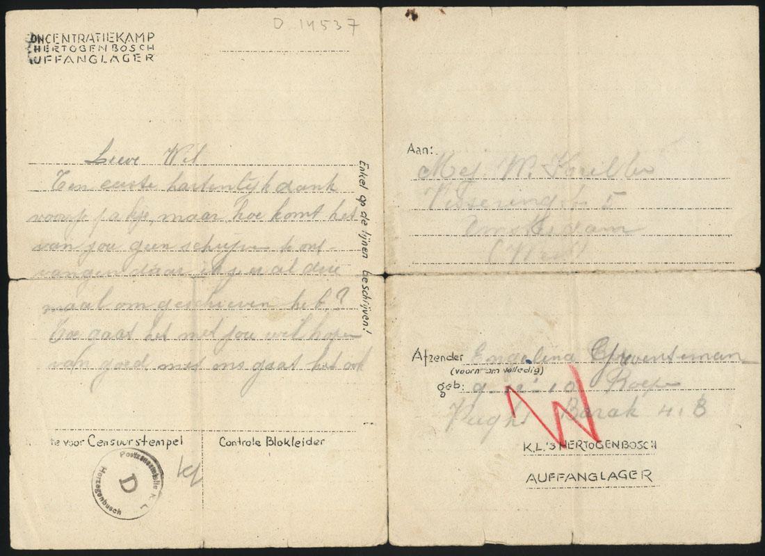 Brieven (3) van Lien Groenteman-Roeper uit kamp Vught aan haar vriendin mejuffrouw Wil Kriller in Amsterdam, 1942