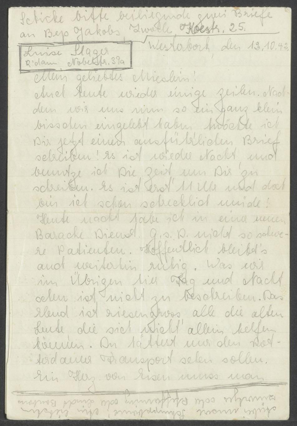 Brief uit Westerbork van ene Edith aam Luise Slager, 1942