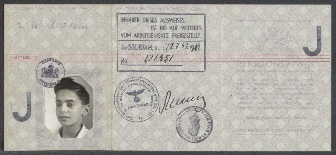 Persoonsbewijs met een "J" en een Sperr op naam van Ernst Wolfgang Stein, 1943