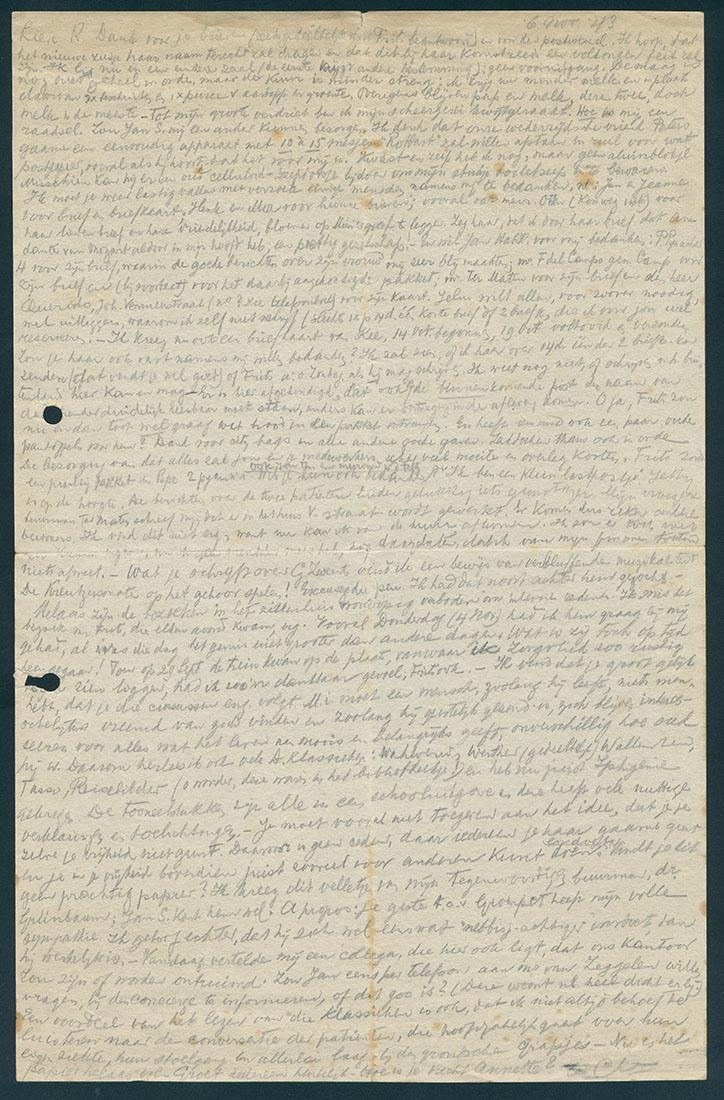 Brief van mr. Carel Daniel Salomonson vanuit Westerbork aan zijn zuster Rosa Maria van der Muelen-Salomonson in Amsterdam over zijn leven in Westerbork, 1943