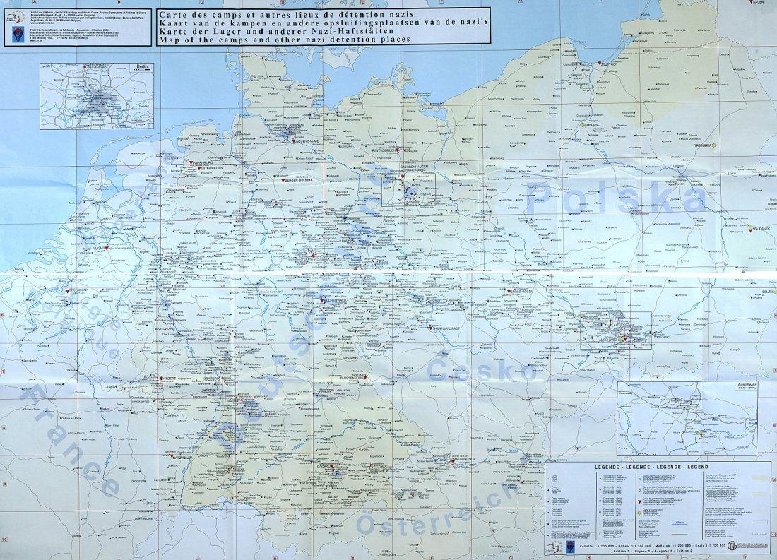 Landkaart (viertalig) van de kampen en andere opsluitingsplaatsen van de nazi's, 2011