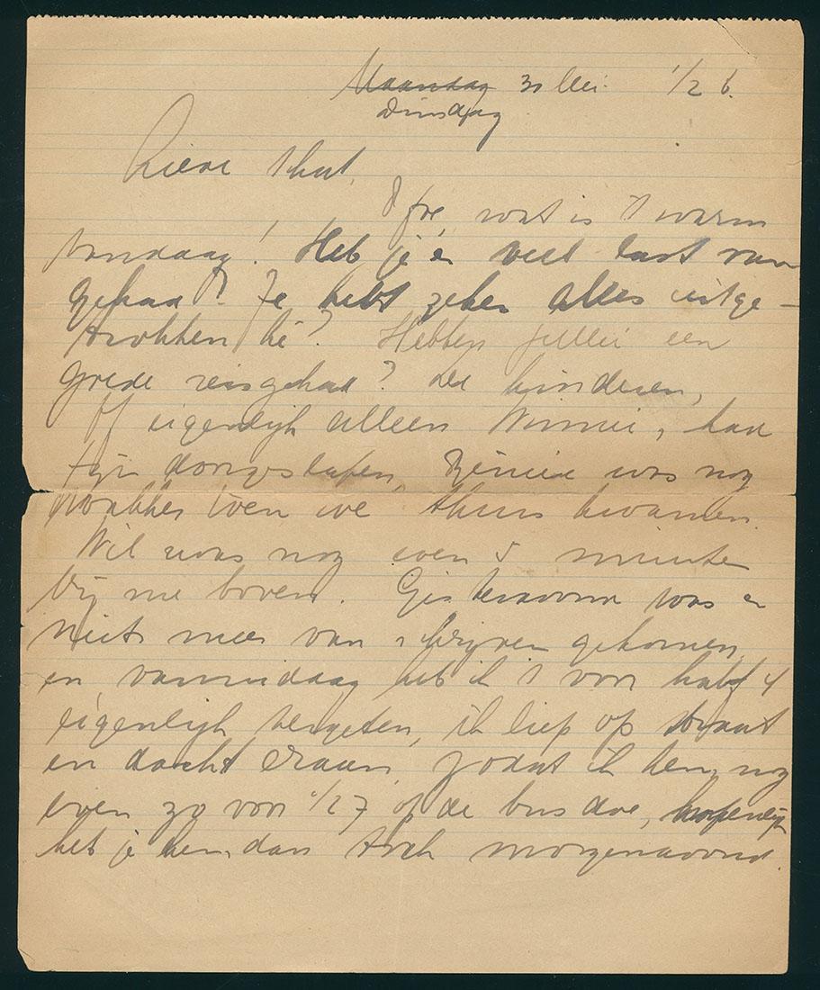 Brieven (52) van Willemina Hendrika van der Linden-Leeuw aan haar man Joseph van der Linden in het kamp voor gemengd gehuwden 't Zand, 1944