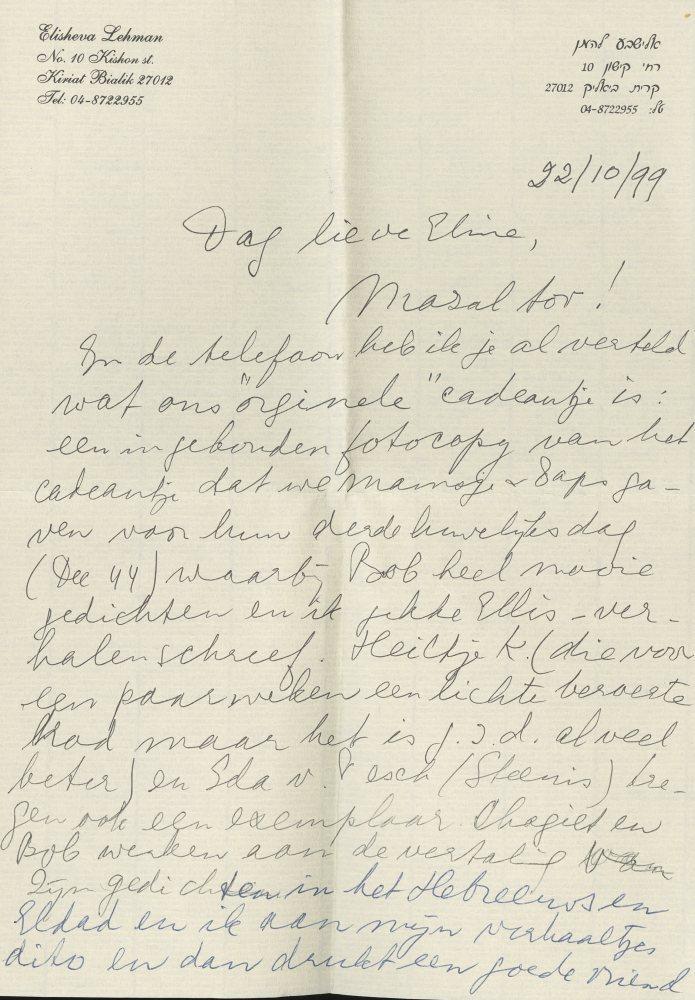 Brief van Ellis Lehman Cohen Paraira aan Eline Smalhout, betreffende het boekje dat ze haar opstuurt, 1999