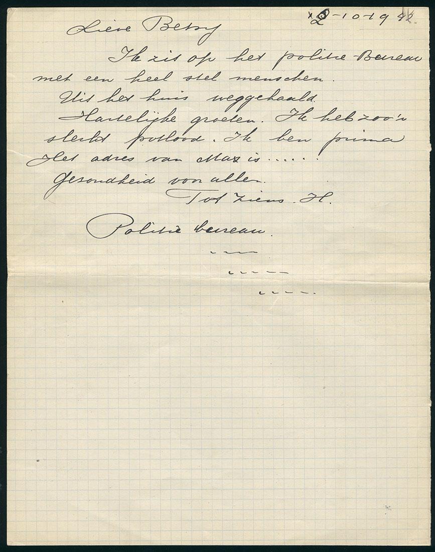 Laatste brieven (+ enveloppe) uit Westerbork van Marcus (Max) Assou en Henriette (Hetty) Assou-Kopuit, gericht aan Betsy, een zuster van Henriette, oktober 1942