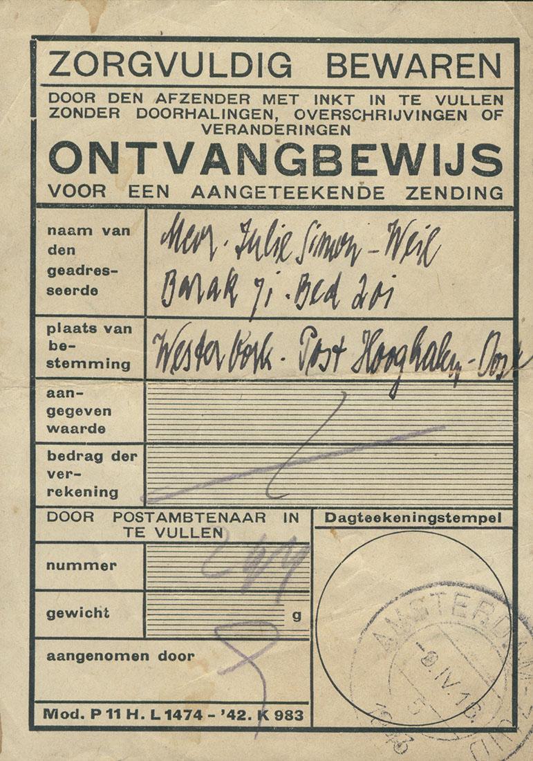 Inhoud: 1. Persoonsbewijs van Ruben Cohn (19 oktober 1943) 2. Distributie Stamkaart - 1939 3. Tweede Distributie Stamkaart 4. Briefje van de arts J.W.A. van der Wal uit Hoogeveen aan mw. Cohn inzake haar man, 11 maart 1942 5. Origineel + kopie Verklaring van J.A. Grunwald 12 november 1945, dat Robert Cohn tijdens de bezetting als illegaal medewerker bij zijn groep was aangesloten 6. Legitimatiebewijs van R. Cohn van de Amsterdamsche Bond van Oud-Illegale Werkers, 1950 7. Verklaring van Geerdina Hamminga-Zuiderweg dat zij en haar man Tjarko Hamminga vanaf eind juni 1942 een onderduikplek hebben gegeven aan Frieda Cohn-Kornetzky, november 1951 8. Verklaring van R. Cohn inzake de onderduikperiode van zijn vrouw tijdens welke haar gezondheid zeer is verslechterd, november 1951 9. Verklaring van fabrikant Siegfried Liebenau uit Amsterdam, dat Frieda Cohn gedwongen was onder te duiken en dat het echtpaar Hamminga haar daartoe de mogelijkheid heeft gegeven in hun woning, 1951 10.Curriculum vitae en personalia van Ruben Cohn. Hij woonde sinds 1 februari 1934 op Ruysdaelstraat 26 te Amsterdam. Na Hitlers' staatsgreep heeft hij samen met zijn vrouw Berlijn verlaten en hebben zij zich in 1933 gevestigd in Nederland. Op 3 september 1938 was hun de Duitse nationaliteit ontnomen. In zijn onderduiktijd hield hij zich bezig met de verspreiding van de Londense radioberichten en regelmatige verzorging van onderduikers met levensmiddelenkaarten. 11.Kopie van "Mijn levensloop" (Mein lebenslauf) van Frieda Cohn-Kornetzky (5-12-1951) met kopie van verklaring van het Finanzamt (Belastingdienst) Charlottenburg, dat er geen bezwaren zijn tegen emigratie (1933) 12.Ontvangbewijs voor een aangetekende zending: Julie Simon-Weil - Barak 71 Westerbork, 8-4-1943