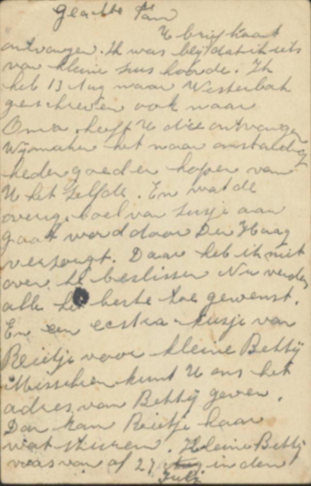 Een als onverzendbaar geretourneerde briefkaart van C. Ladiges aan de familie Levie in Westerbork, 1943