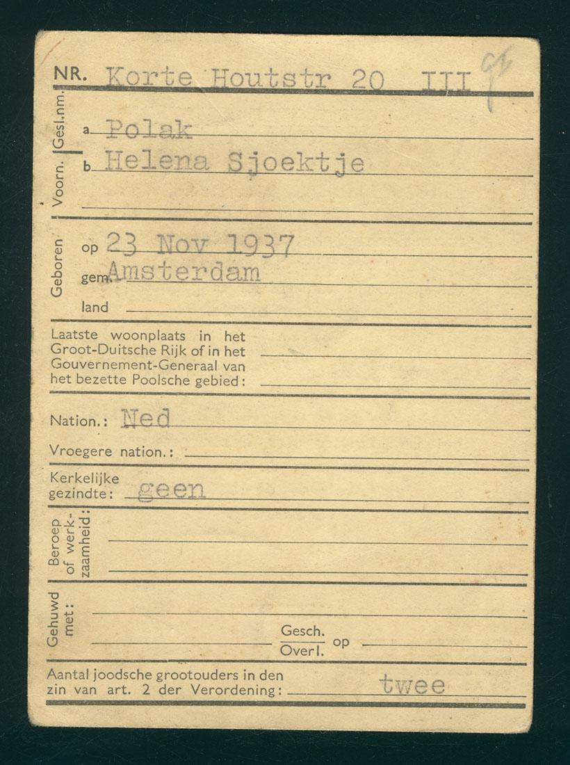 Bewijs van aan melding als joods persoon op naam van Helena Sjoektje Polak (1937), 1941