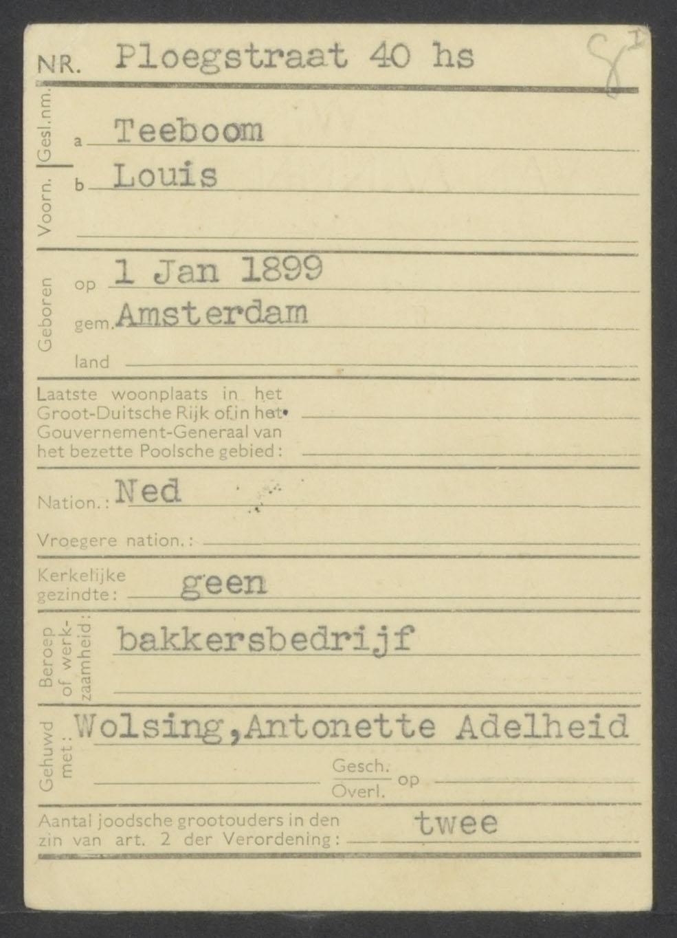 Bewijs van aanmelding betreffende de aanmedlingsplicht van personen met een joodse achtergrond, op naam van Louis Teeboom, 1941