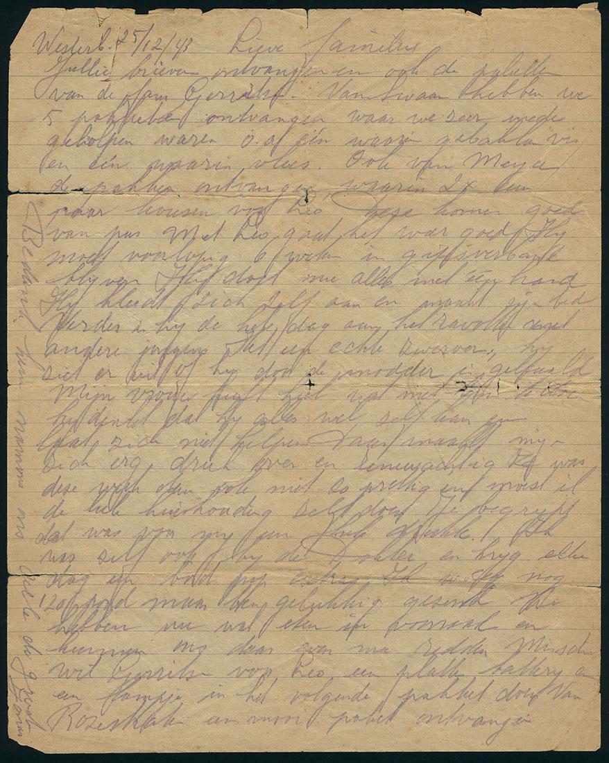 Brief van Jonas Kattenburg en zijn vrouw Bertha Kattenburg-Rueff vanuit Westerbork aan hun familie in Amsterdam, 1943