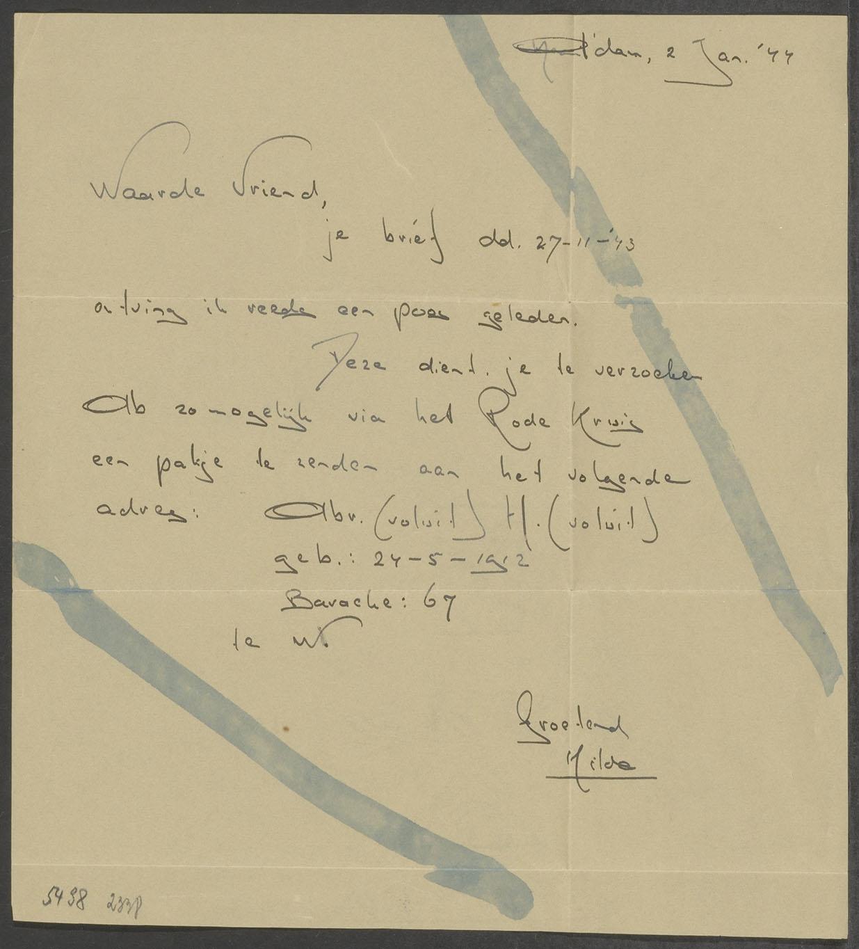 Brieven en briefkaarten van familie, vrienden en vriendinnen aan Martijn Fuldauer, 1944