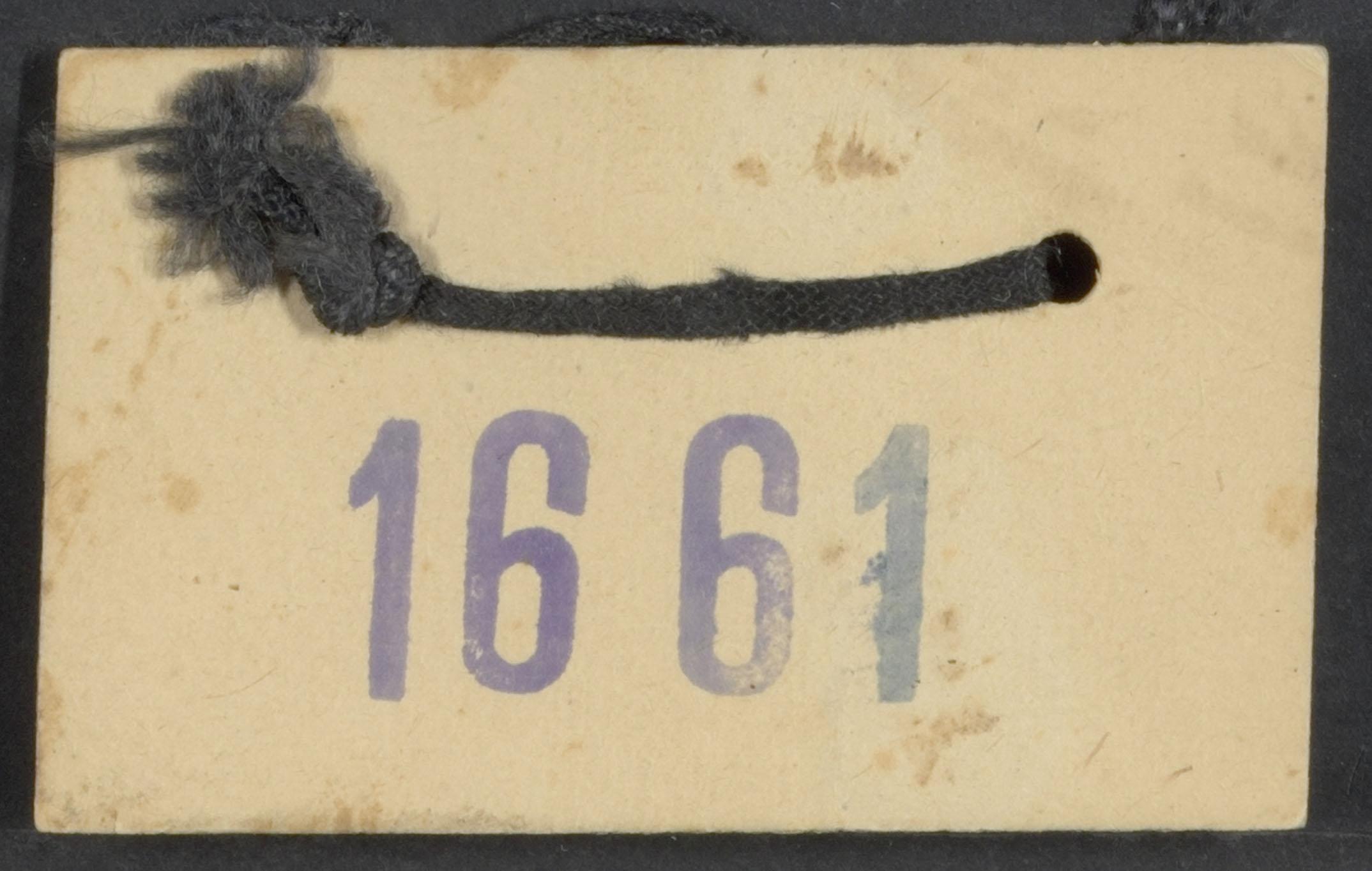 Inhoud: 1. deel van originele transportlijst: Transport Equ nummers 721 t/m 734 met als laatste de naam van een Nederlands meisje: Kitty Coronel. 2. kaartje met transportnummer en touwtje; dr. Speijer schrijft hierover o.a.: "De op de lijst voorkomende personen werden in de Schleuse (sluis) tussen kamp en deportatietrein bijeengebracht om op deportatie te wachten. Van hieruit werden zij naar de gereedstaande treinen gebracht. Hun transportnummer - correpsonderende met het nummer voor hun naam op de lijst - droegen zij aan een touwtje op de borst. Bij de trein werd het nummer gecontroleerd, het touwtje doorgeknipt, het nummer weggegooid, waarna zij in de gereedstaande treinen werden geladen...".