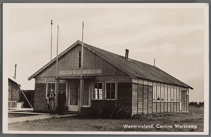 Prentbriefkaart van de kantine van het werkkamp De Slikken in Westernieland, circa 1942