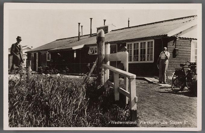 Prentbriefkaart van werkkamp "De Slikken" B in Westernieland, circa 1942