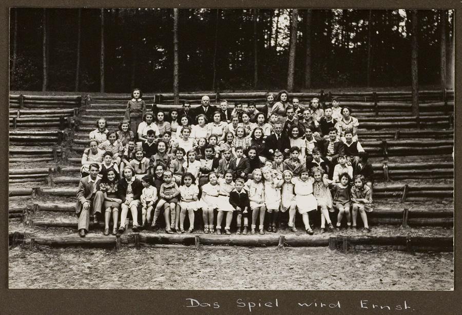 foto a: Op deze foto zitten op de voorste rij, derde van rechts Salla en vijfde van rechts Lotte Auszenberg. Tweede rij, achtste van rechts Max Auszenberg en op de eerste rij, zesde van links (op schoot) Josef Auszenberg Afscheidsfoto van Soesterberg? foto c: vlnr op de voorste rij: Max, Salla, Lotte ne Josef Auszenberg foto d: Rosa en Elly Grünberg foto e: Jacquie Zwiebel en Bubi Körner foto f: Max, Salla, Lotte en Josef Auszenberg foto g: Bernhard Wasserman en Arnord Hüttner foto h: Helemaal links vooraan staat Lotte met direct daarachter Salla. Max staat vier plaatsen achter Salla. De kleine Josef staat niet op deze foto. foto i: Renate en Friedl Chaim foto j: Josef Auszenberg foto k: Josef Auszenberg foto l: Op deze foto staat Josef met zijn zusje Lotte (vergelijk de kleding op de verschillende foto’s) foto n en o: de leiding foto p: Margot Cohen en onbekende jongen (haar broer Herbert?) foto p en q: Margot Cahn en Heinz Altmann Margot Cohen uit Goch staat op foto's p en q. Zij heeft de oorlog overleefd, haar broer Herbert (Herbert Cohen Goch, 23 januari 1931 - Auschwitz, 25 oktober 1944) niet. Staat hij op foto p? info van Miriam Mijatovich-Keesing [miriam@mijatovich-keesing.net]. Via Miriam Keesing komt mogelijk nog meer informatie over de mensen in dit album. Zij heeft contact met Margot Cohens zoon Herbert Keinon, journalist voor de Jerusalem Post en krijgt misschien via hem een foto van Herbert Cohen (Herbert Cohen, Goch, 23 januari 1931 - Auschwitz, 25 oktober 1944). Mogelijk staat hij op foto p in dit album.