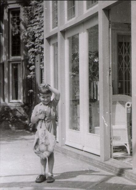 Jaap Wertheim bij zijn vertrek uit Laren (NH), waar hij bij de familie van Blaaderen zat ongedoken, op weg naar Eindhoven, mei 1945.