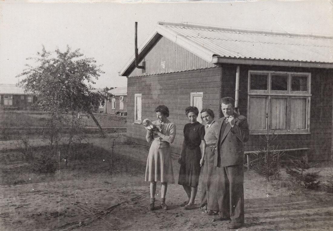 Hermann Gurau en zijn vrouw Ina Gurau-Lesser met twee onbekende mensen in Westerbork, ca. 1945