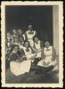 Groepsfoto kort na de bevrijding gemaakt op de onderduikplek van Hannie van der Hoeden en haar broer Barend op de boerderij van de familie Roelofsen in Lunteren, 1945