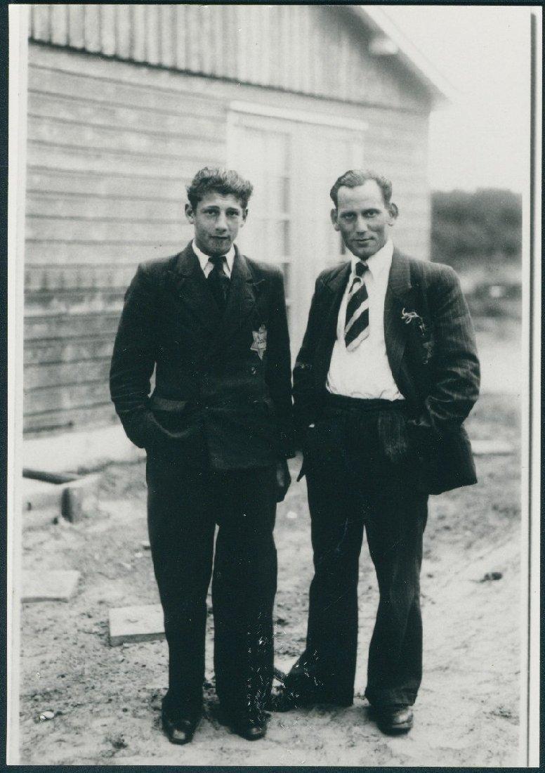 Louis (rechts) van Thijn (1917-1943) en een familielid van zijn vrouw Bep Trompetter (1915-1944) in een werkkamp, 1942