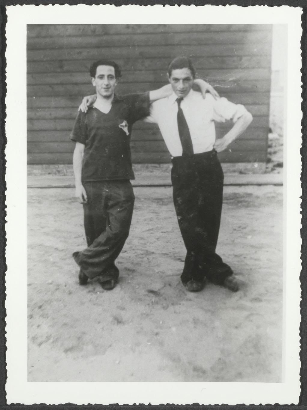 Twee mannen in vermoedelijk werkkamp Ybenheer, ca. 1942