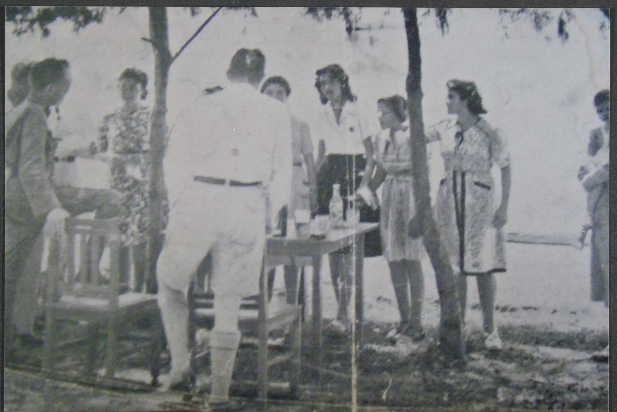 Foto van kamp Onrust op het gelijknamige eiland met tweede van rechts Marcelle Piller, 1941