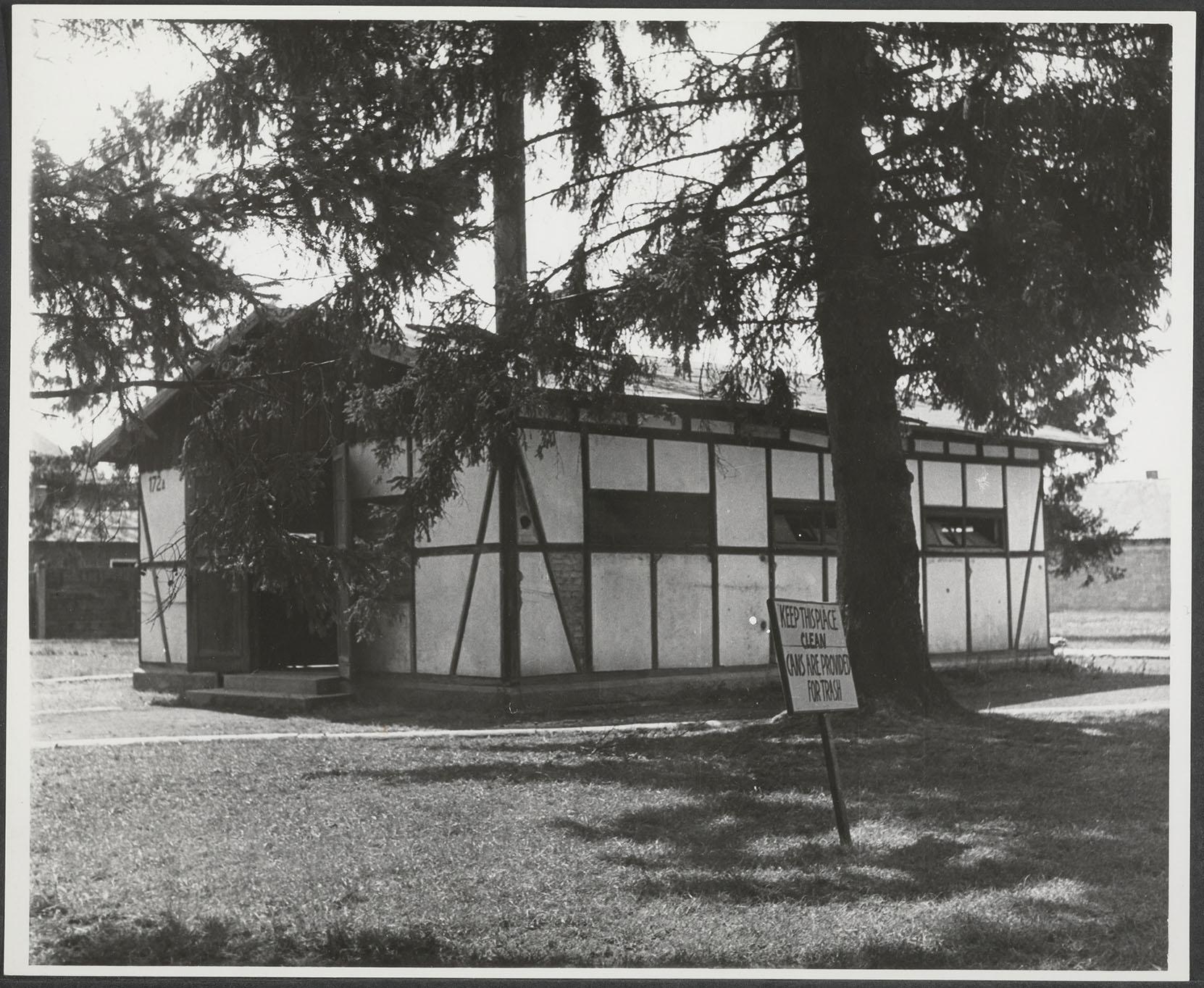 Het voormalige concentratiekamp Dachau met het oude crematorium, 1947