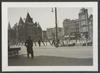 Overzichtsfoto van de Nieuwmarkt met hek met prikkeldraad dat de Jodenbuurt korte tijd afsloot, voorjaar 1941