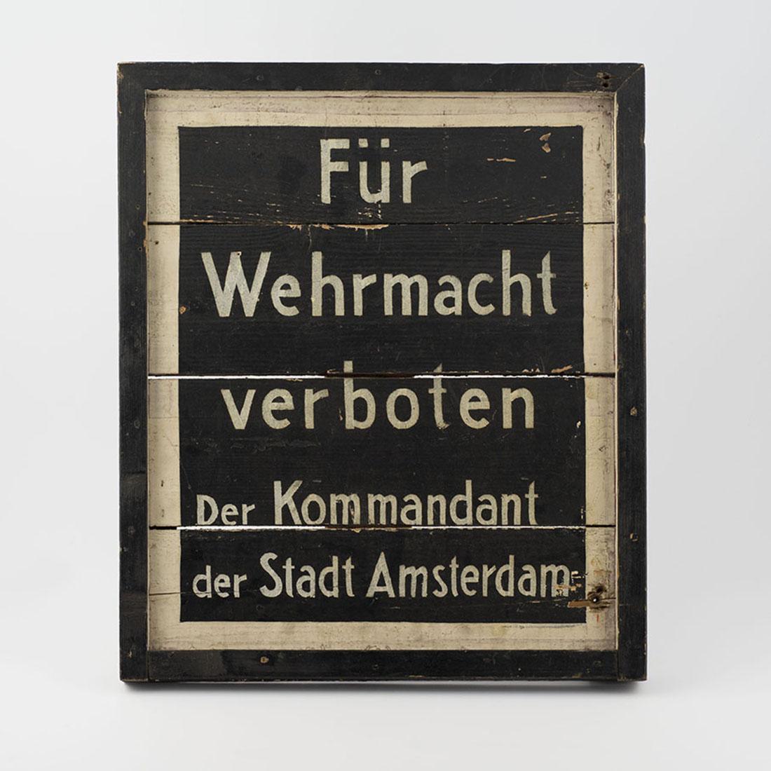 Bord met daarop 'Für Wehrmacht verboten - Der Kommandant der Stadt Amsterdam'