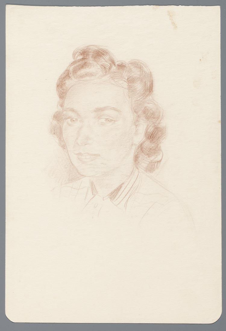 Onbekende vrouw, schouderstuk en trois quart naar links.