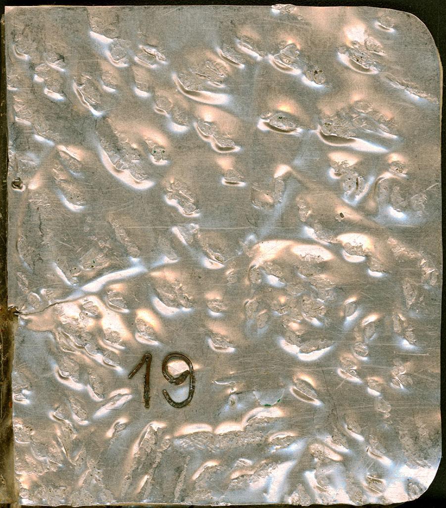 Klein vierkant jaarkalendertje van 1945 met in de rug aan elkaar geniete pagina's. Op de rechterpagina's maandoverzichten, op de linkerpagina's gedichtjes in het Duits en Nederlands, geïllustreerd met gekleurde potloodtekeningetjes. Het omslag is van gedeukt blik met aan de voor- en achterkant in ijzer aangebrachte opschriften '19[45]', 'Reichenbach' en '15-124'. Met bijbehorende papieren opbergenvelop.