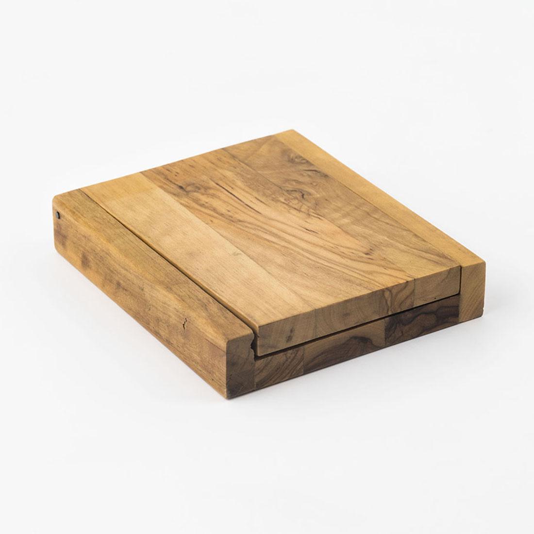Olijfhouten cassette voor Yad Vashemonderscheiding (Jhm 9460a). Gevoerd met blauw fluweel.
