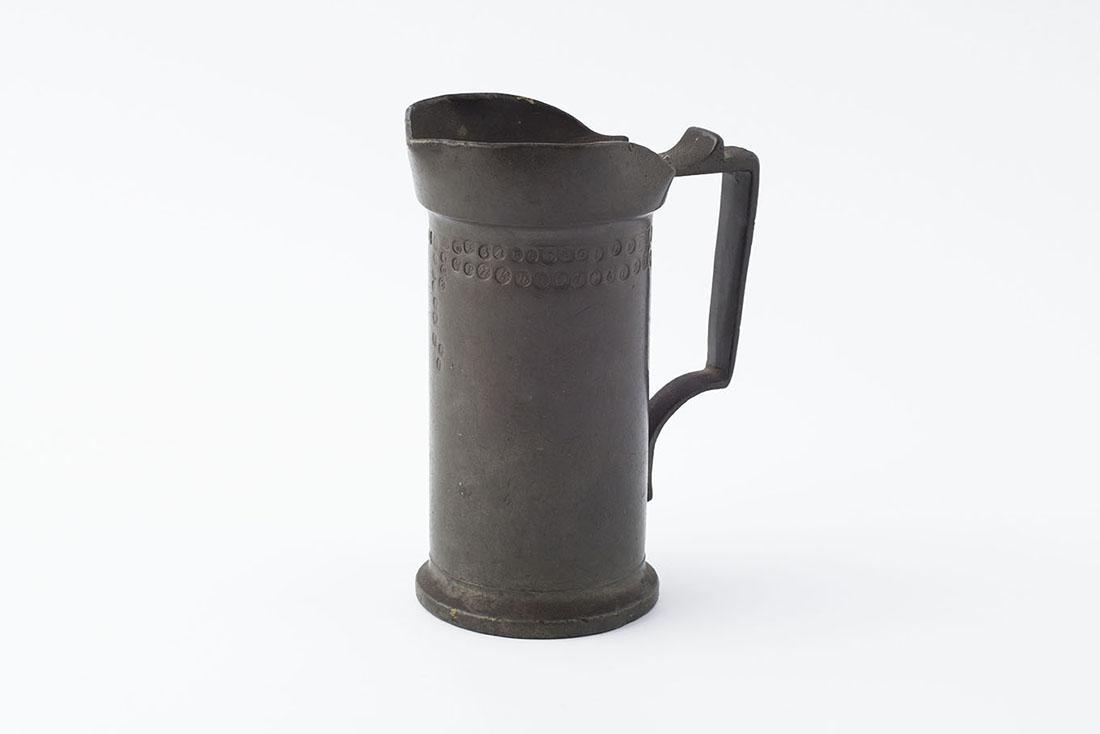 Eenvoudige tinnen maatbeker met vele ijkmerkjes