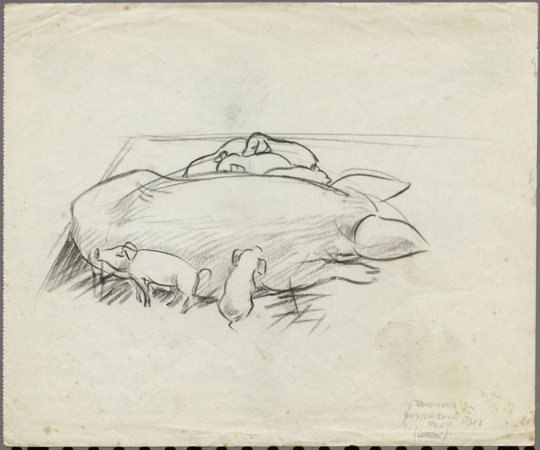 Een liggend varken met biggen