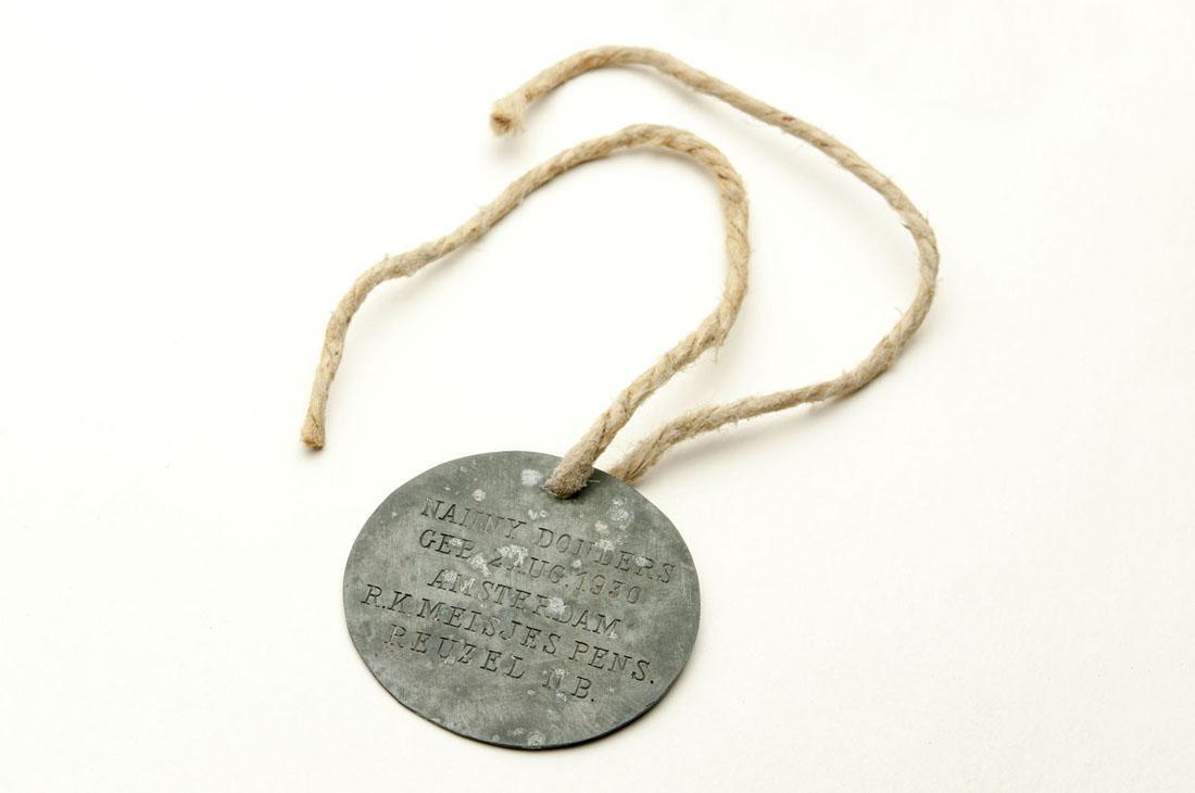 Identiteitspenning uit een R.K meisjespensionaat in Reusel (Noord-Brabant), met daarop de aangenomen onderduiknaam van een Joods meisje.
