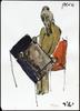 Aquarel veertien uit een serie van zesenzestig die tezamen een autobiografisch verhaal vormen. De in een naïeve gestileerde stijl geschilderde aquarel is voorzien van een Hebreeuwse tekst.