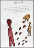 Aquarel vijfenzestig uit een serie van zesenzestig die tezamen een autobiografisch verhaal vormen. De in een naïeve gestileerde stijl geschilderde aquarel is voorzien van een Hebreeuwse tekst.