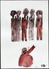 Een in een naïeve gestileerde stijl geschilderde aquarel voorstellende een man voor een uit zes personen bestaand publiek. Is hij aan het fotograferen?
