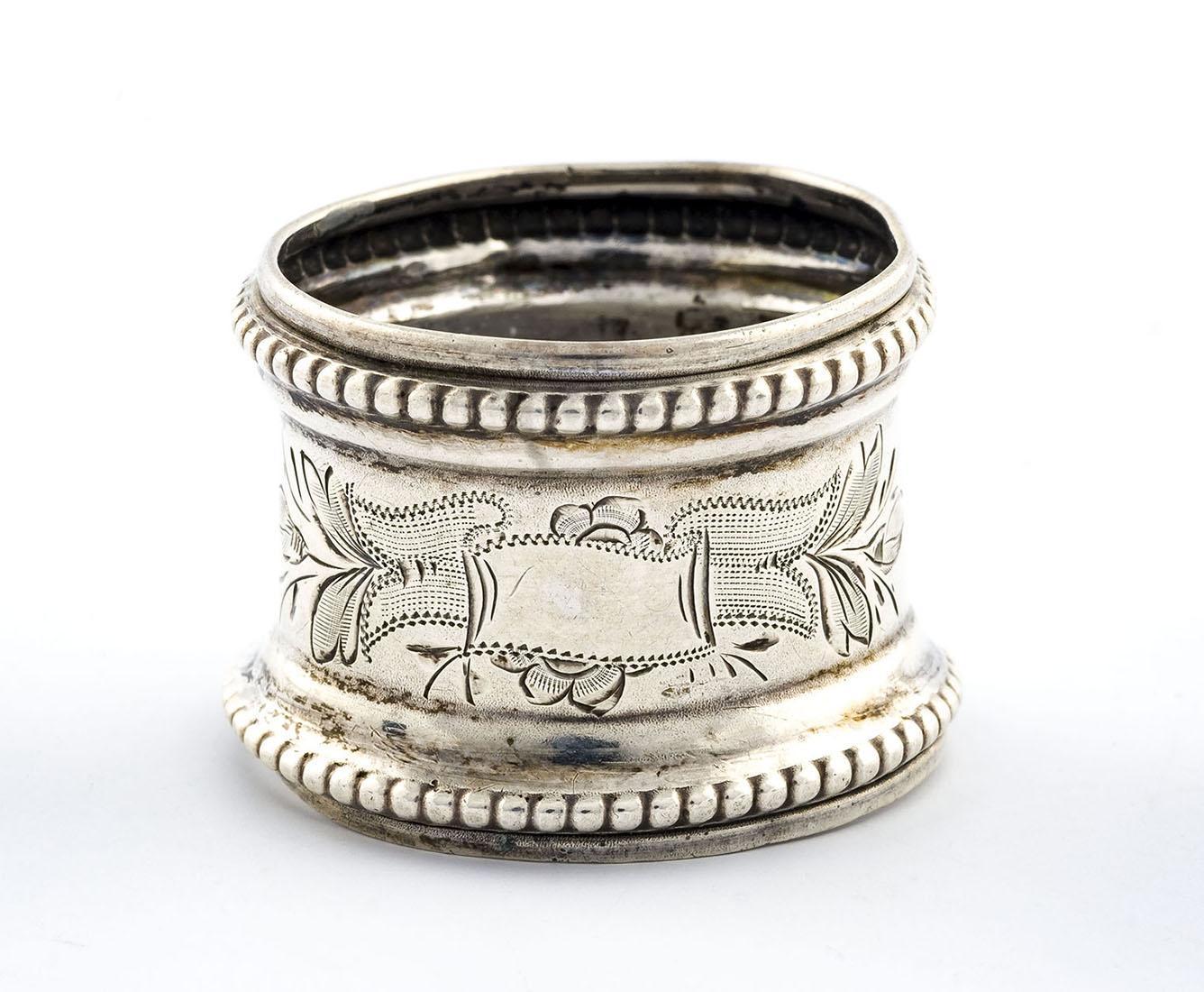 Ovale servetring met twee eierlijst randjes en een gegraveerde naam.