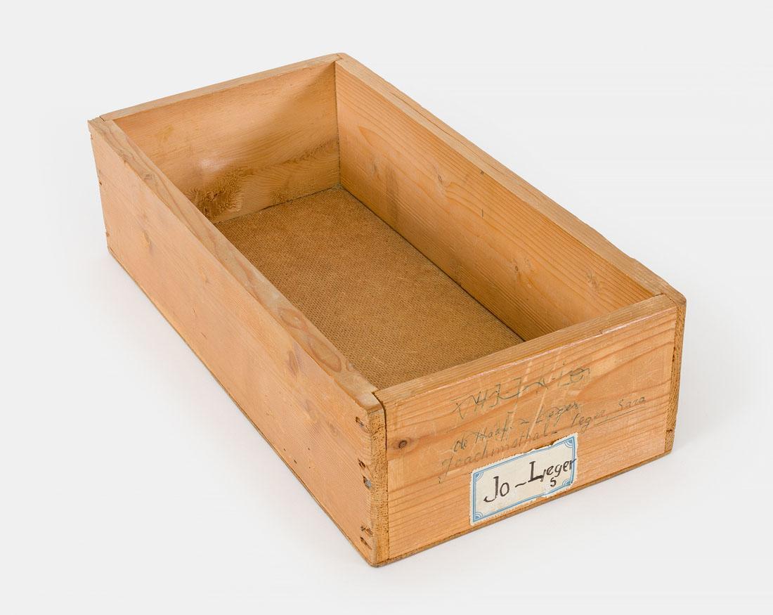 Tentoonstellingstekst Nationaal Holocaustmuseum, maart 2024 Rode Kruis Het Nederlandse Rode Kruis kreeg van de regering opdracht om onderzoek te doen naar alle mensen die uit Nederland waren gedeporteerd. In dit soort kistjes legden de medewerkers een registratie aan.