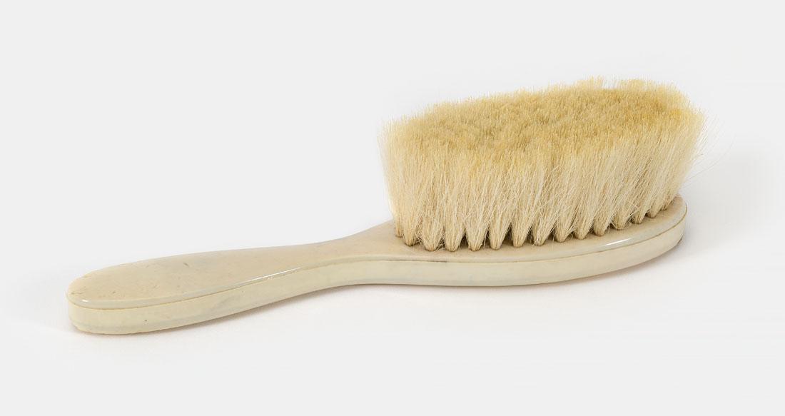 Tentoonstellingstekst Nationaal Holocaustmuseum, maart 2024 Verzorgingssetje De vijfjarige Frits Lange dook in 1943 onder bij het oudere echtpaar Tielrooij in Heiloo. Deze babyborstel en het zeepdoosje en de kreeg hij mee van zijn ouders. Hij bewaarde er zijn plakkertjes in. De Joodse Frits speelde veel in de tuin. Ook knutselde hij een pijp. In september 1943 ging het mis. Frits speelde buiten toen de Sicherheitsdienst hem oppakte. Op 3 maart 1944 werd hij vanuit Westerbork naar Auschwitz gedeporteerd en daar vermoord. Zijn ouders en broers waren elders ondergedoken en overleefden de Sjoa.