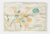 Geborduurd en gevoerd mapje van textiel voor het opbergen van spelden en naalden. Op de voorzijde een geborduurde 'L'.
