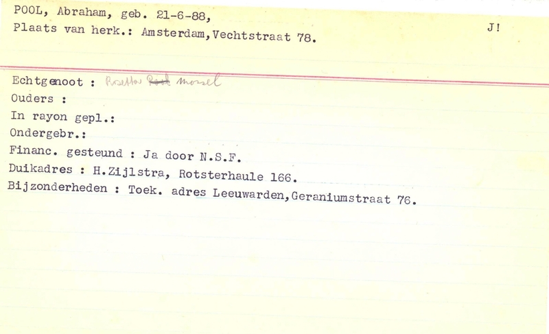 Onderduikinschrijving van Abraham Pool